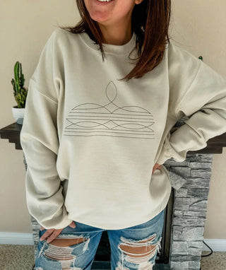 Introducing the most popular sweatshirt of the year, featuring a bold embroidered boot stitch, making you stand out from the crowd. This statement piece is an absolute essential in every cowgirls closet!